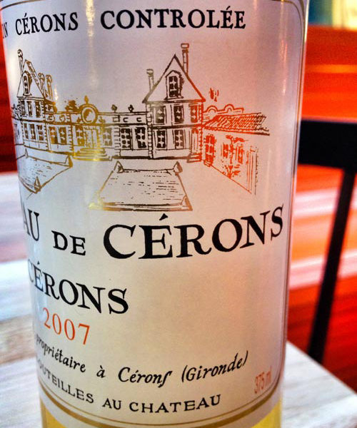 Chateau de Cérons 2007, Xavier and Caroline Perromat, Cérons, Bordeaux, France Some wines are just cute, and this little chap beguiled us at a recent lunch at newly opened Jago…